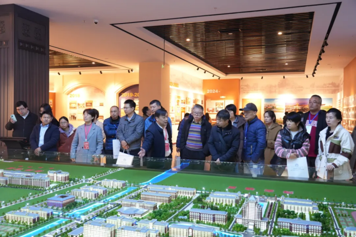 会后,平安陆金所科技集团董事长张福德、总经理唐佩随队和与会人员一起参观了南通理工学院的数智展馆、张謇教育文化馆等地并合影留念。
